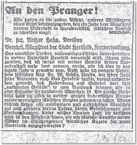 "Bekanntmachung" der NSDAP in der Hersfelder Zeitung
