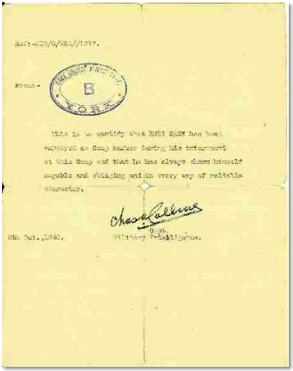 Zeugnis der Lagerleitung in York: