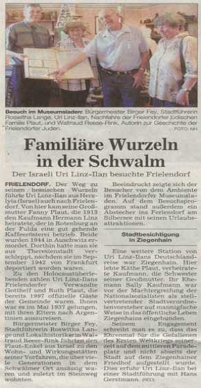 Bericht über den Besuch von Uri Linz-Ilan in Frielendorf u. Ziegenhain im Mai 2005