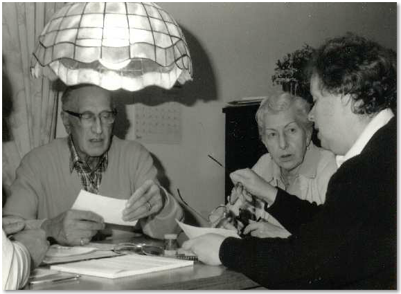(von links) Hans und Marga Löwenberg im Gespräch mit Liesel Honikel beim