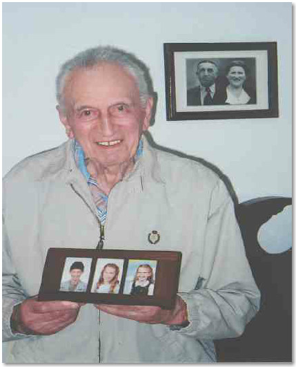 seiner drei Enkelkinder. An der Wand
