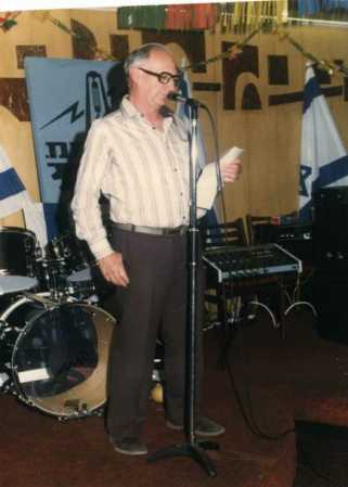 Moshe Naveh bei einer Betriebsfeier, links bei der Begrüßung seiner Mitarbeiter und deren Partner, auf dem Foto rechts zusammen mit seiner Frau Naomi (links neben ihm)