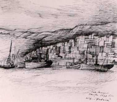 Einfahrt in den Hafen von Haifa (Zeichnung Lea Grundig)
