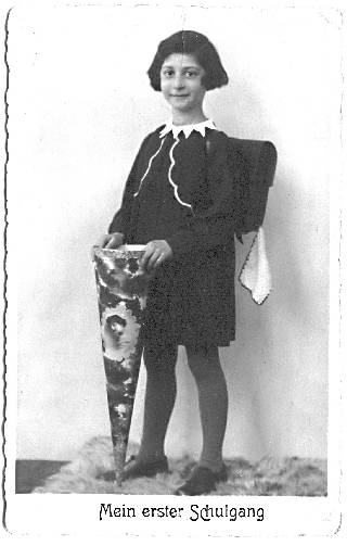 Auf dem Bild links Loni Speier bei ihrer Einschulung in Rotenburg im Jahr 1930.