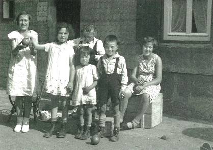 Etwa 1934 im Hof - von links: Erika Flörsheim (s.S.5), Emilie