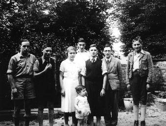 Das Gruppenfoto entstand etwa 1936 im Hof der Familie Joseph Strauss