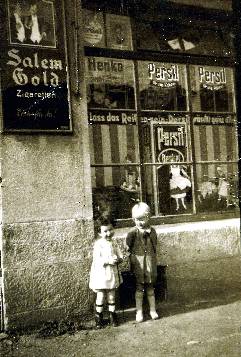 Milly um 1930/31 vor dem Laden mit einer Spielgefährtin