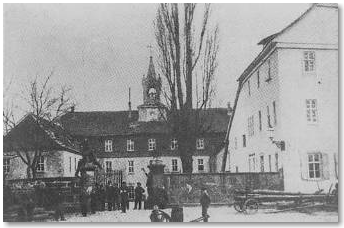Rechts im Bild das ehem. Waisenhaus, das 1906 durch