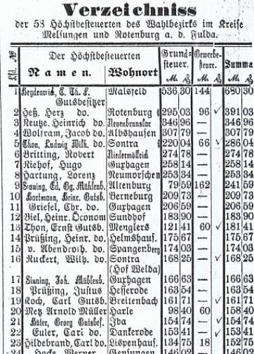 Höchstbesteuerten in der Stadt Rotenburg (mit Herz Hess