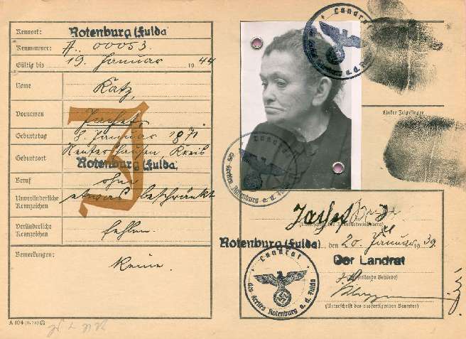 , der Tante von Willy Katz, mit dem Aufdruck "J" für Jude. Weil Jachet als unverwechselbar jüdisch galt, verzichtete man auf den Zusatz "Sara".