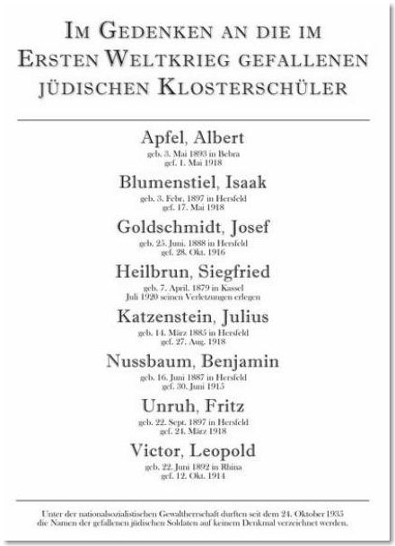 Gedenktafel für die im Ersten Weltkrieg gefallenen jüdischen Schüler der Alten Klosterschule
