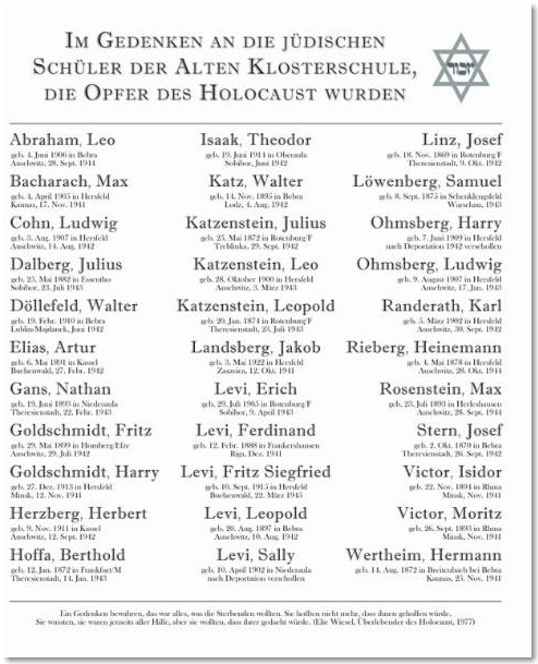 Gedenktafel für die jüdischen Schüler der Alten Klosterschule in Bad Hersfeld, die Opfer des Holocaust wurden