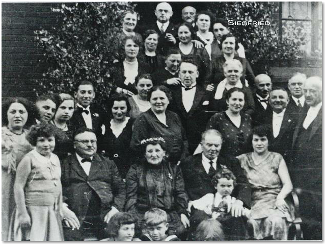 Goldene Hochzeit der Großeltern Juda und Fanny Rothschild in Oberaula 1931. Siegfried Oppenheim (markiert), links dahinter seine Mutter Bertha geb. Rothschild