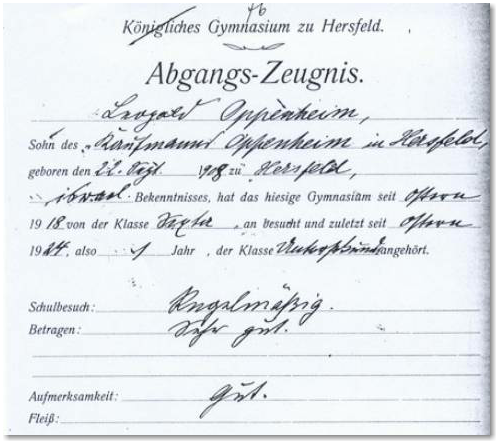 Siegfrieds Bruder Leopold Oppenheim, Jahrgang 1908, verließ das