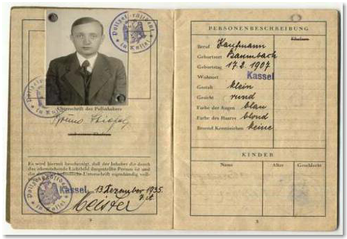 In Bruno Stiefels Reisepass, ausgestellt am 13. 12. 1935 in Kassel,