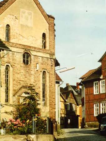 Die bei den Novemberpogromen 1938 geschändete und verwüstete Synagoge diente nach dem Krieg als städtischer Lagerraum, ehe sie in den 1980er Jahren bei der Stadtsanierung abgerissen wurde.