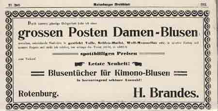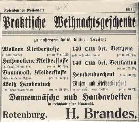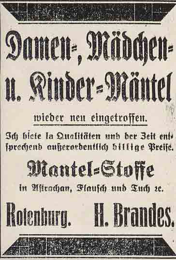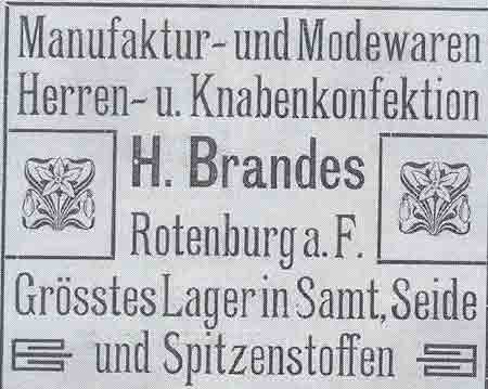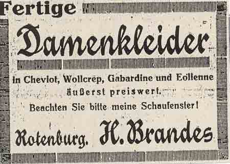 Geschäftsanzeigen von H. Brandes im Rotenburger Kreisblatt