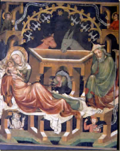 1370 entstandenes Gemälde von der Geburt Christi "Der Heilige